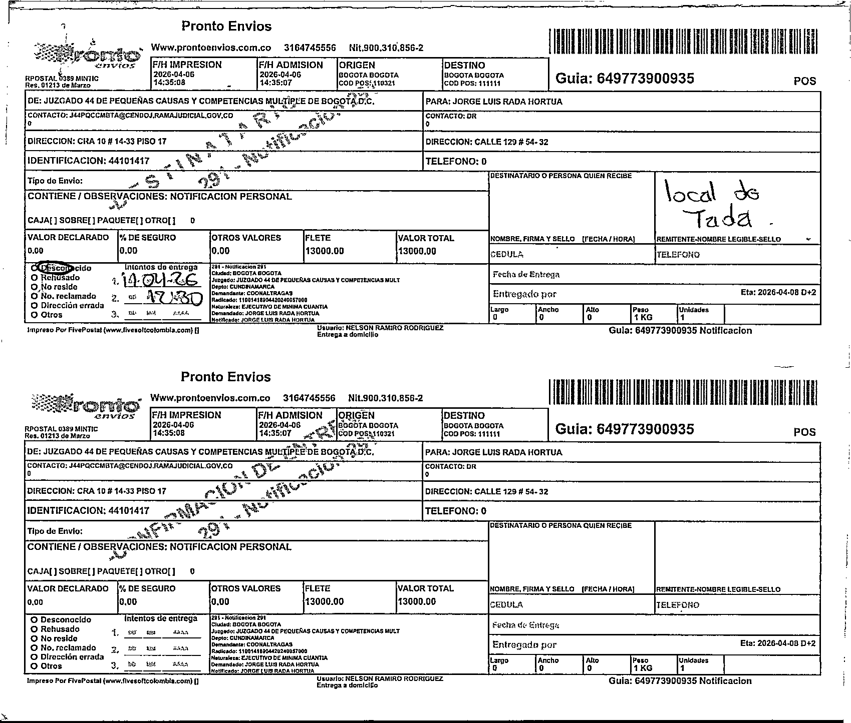 Apache/2.4.65 (Debian) Server at public.prontoenvios.fivesoft.com.co Port 443